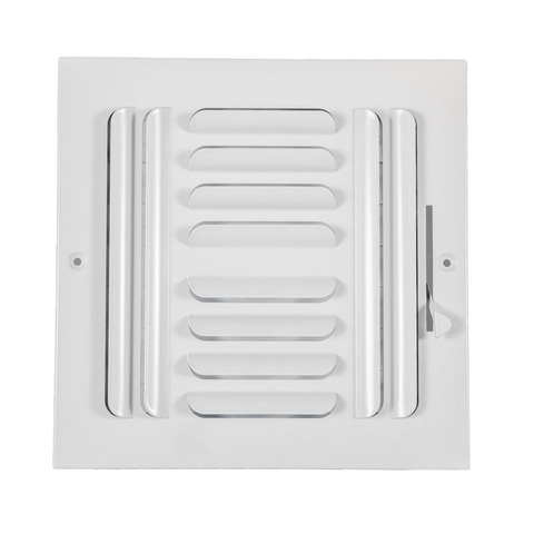 4CB 10*10นิ้ว4ทางเหล็กโค้งคงที่ใบมีดกระจายอากาศพร้อมฝาครอบช่องระบายแดมเปอร์ตะแกรงลงทะเบียนการไหลของอากาศสูง
